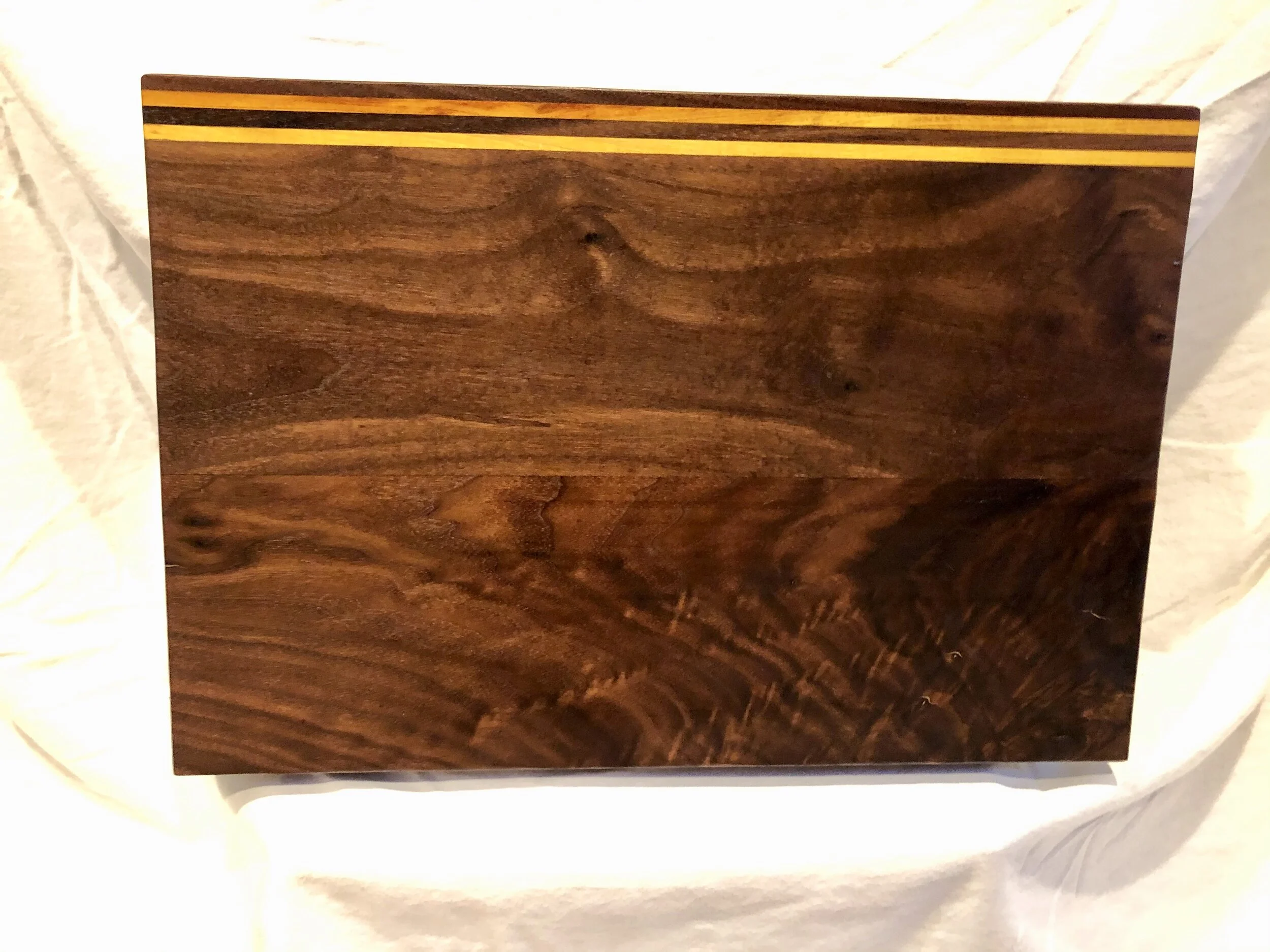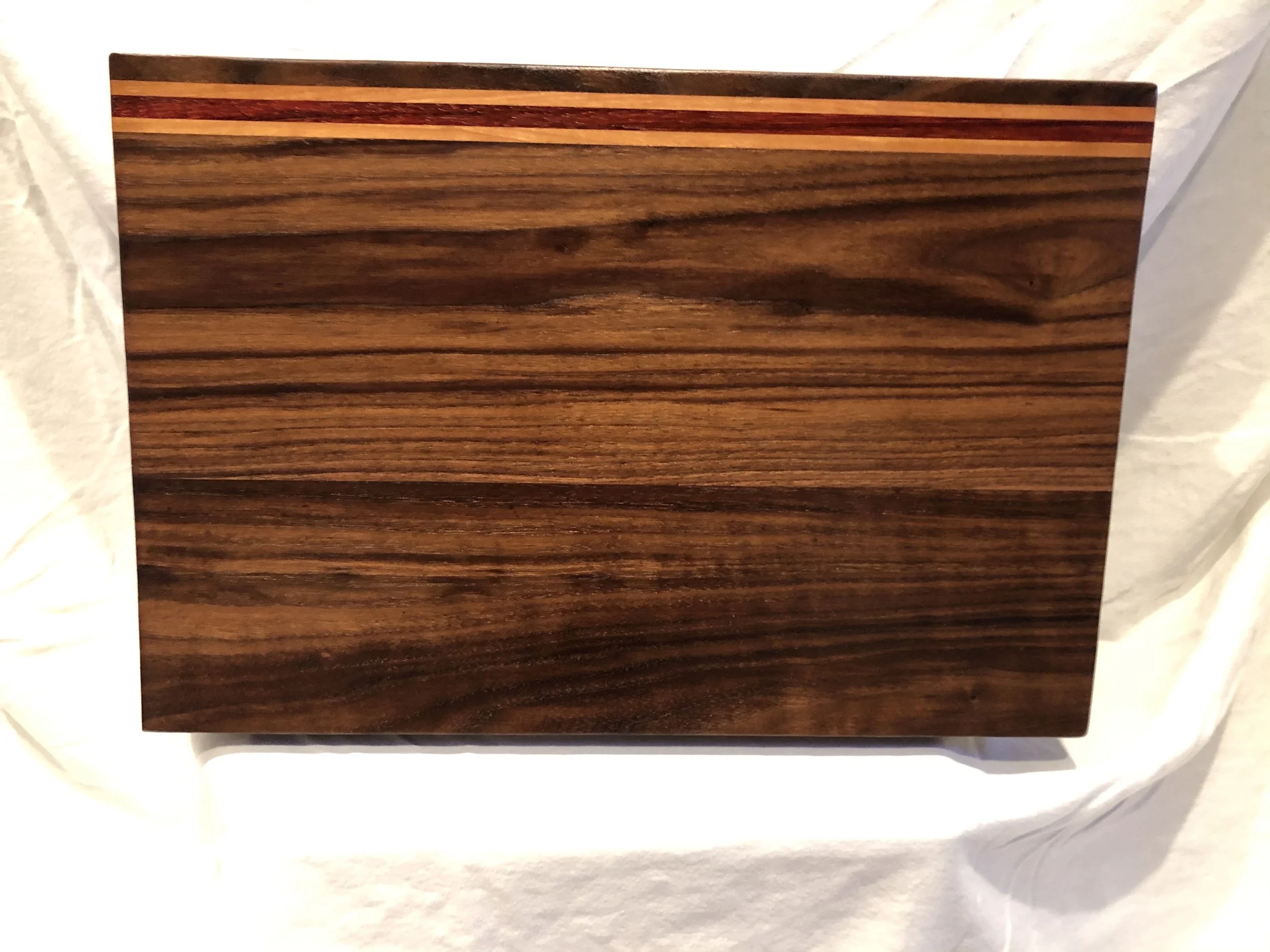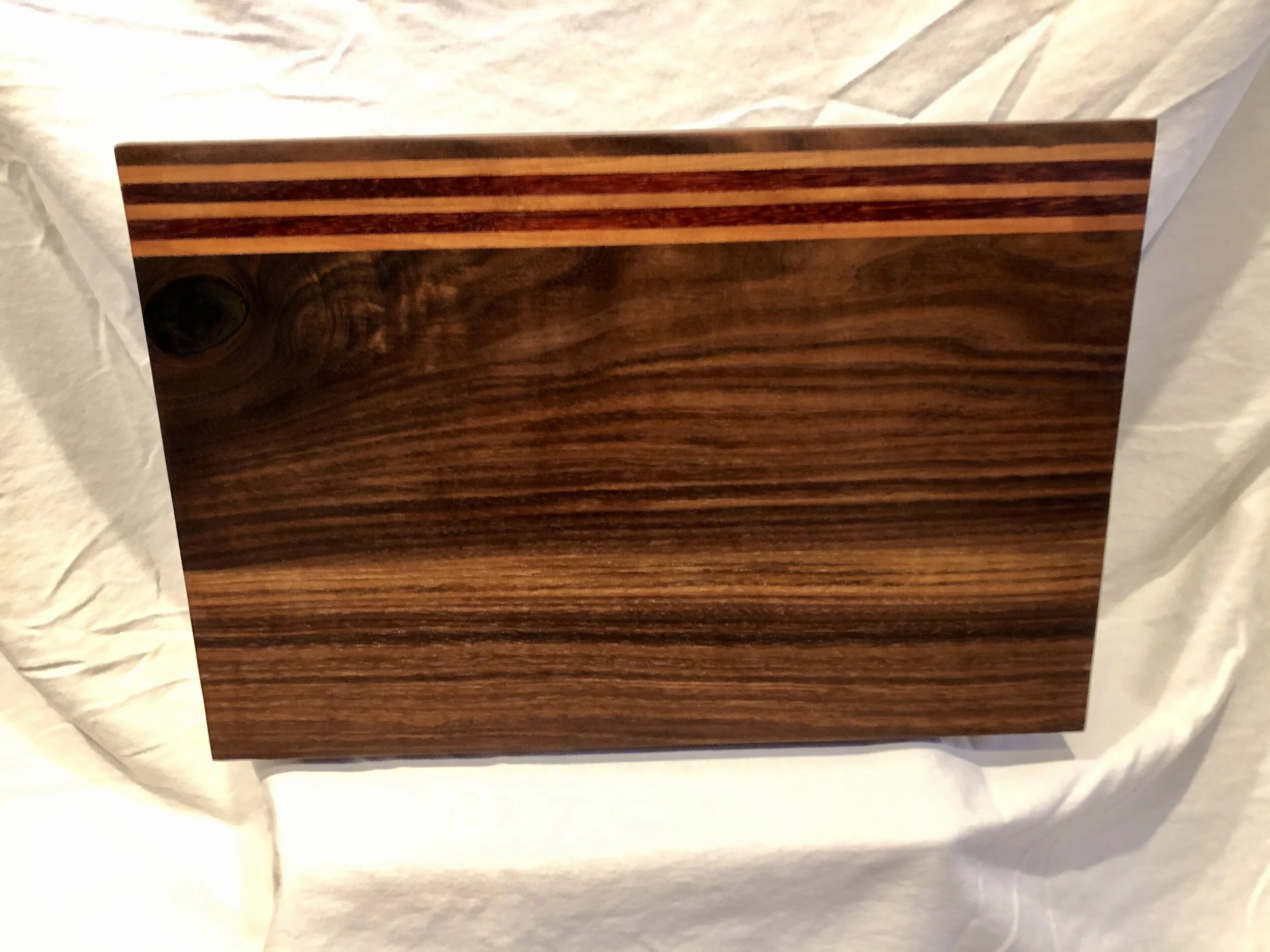 Categories: All Cutting Board Kitchen All / All Cutting Board Kitchen Cutting Board Black Walnut, Purple Heart & Cherry $95.00 Sold out Cutting Board Black Walnut with Osage Orange Honeycomb Design $135.00 Cutting Board Black Walnut with Osage Orange Accents $95.00 Cutting Board Black Walnut with Maple Accents $95.00 Cutting Board Black Walnut with Cherry and Padauk Accents $95.00 Cutting Board Black Walnut with Cherry and Padauk Accents $95.00